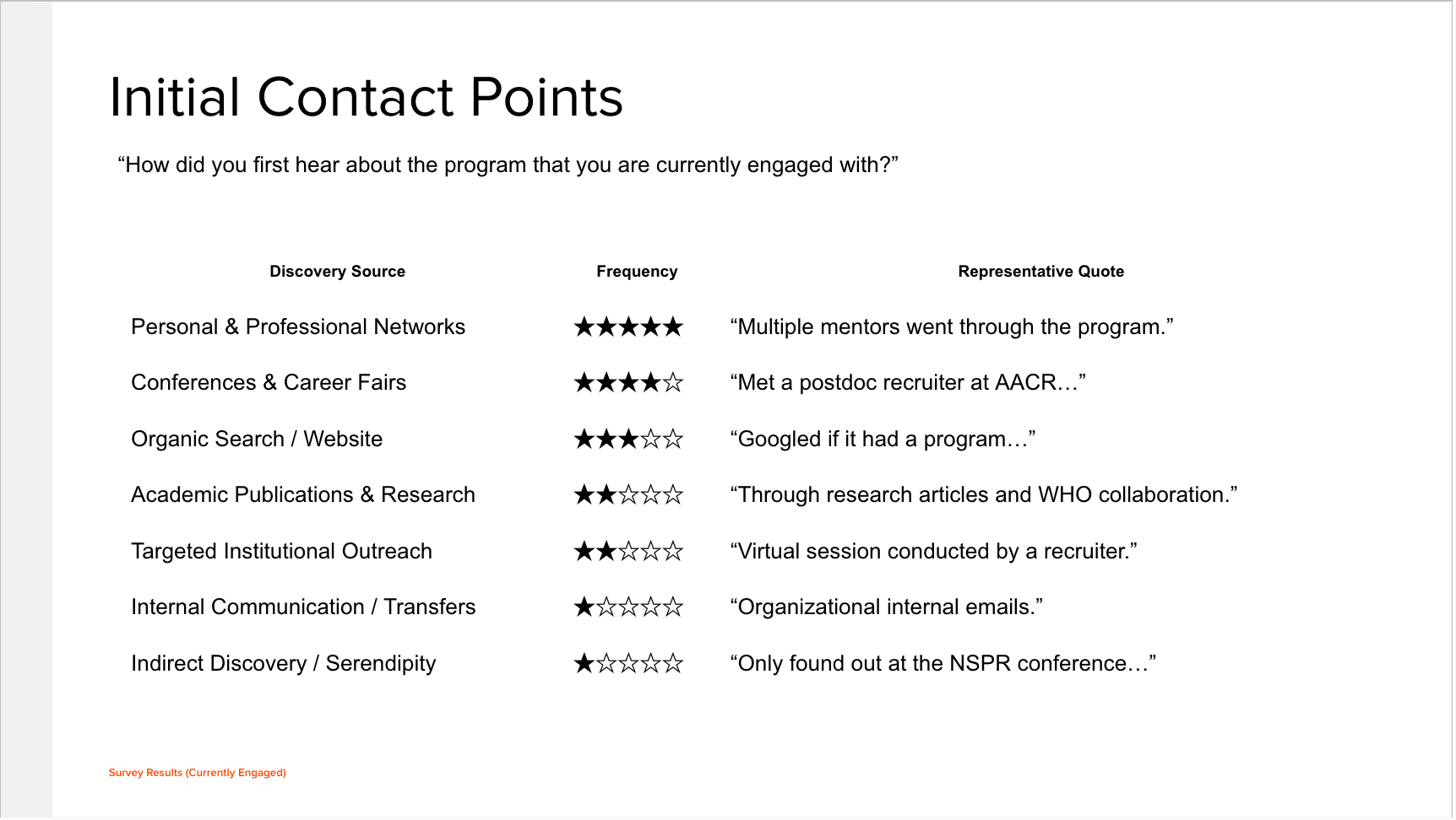 If your research includes multiple audience groups or segments, tables can be an excellent way to communicate differences at a glance.