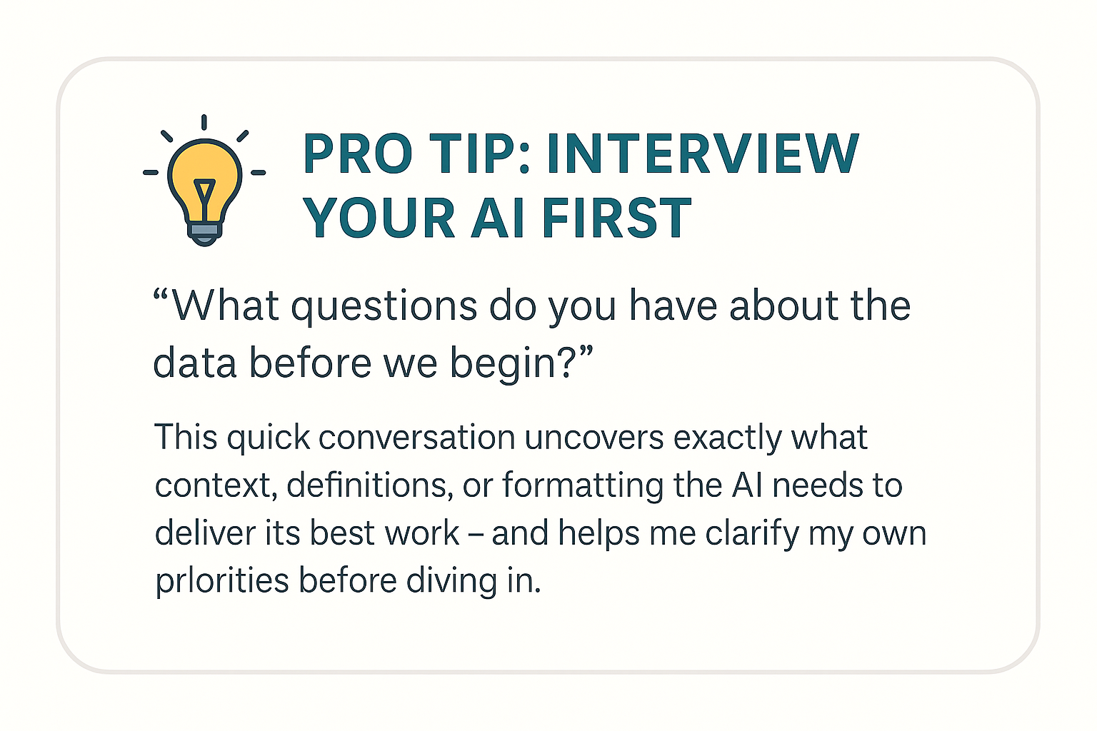 AI tools can be confident guessers. That’s not what we want here. We want precision, integrity, and trust in the insight.